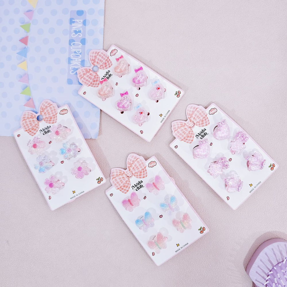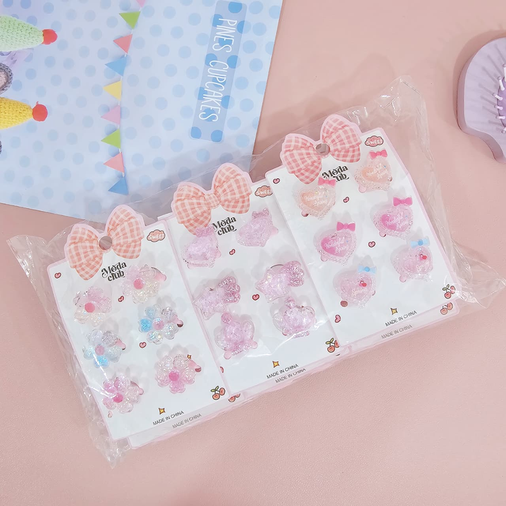 (Blíster x 3 pares de colitas para el pelo con dijes de diferentes diseños decorado con glitter. Ideal para realizar peinados).