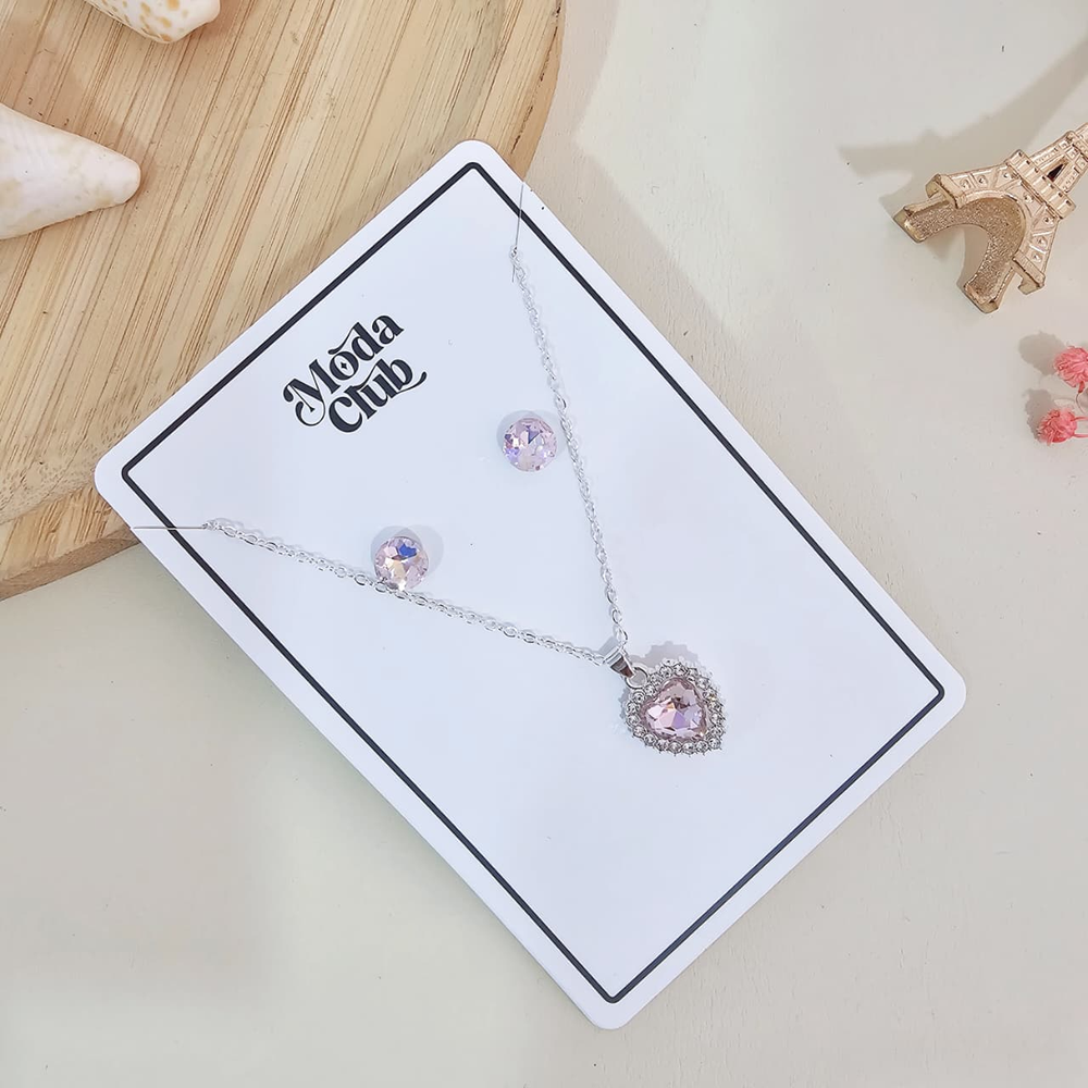 (Set de collar + aros plateados con rosa. Ideales para eventos importantes o para el día a día).
