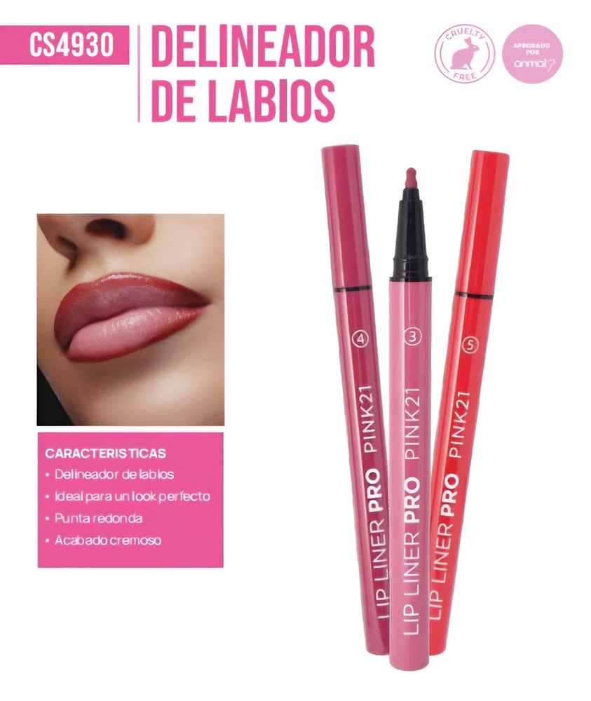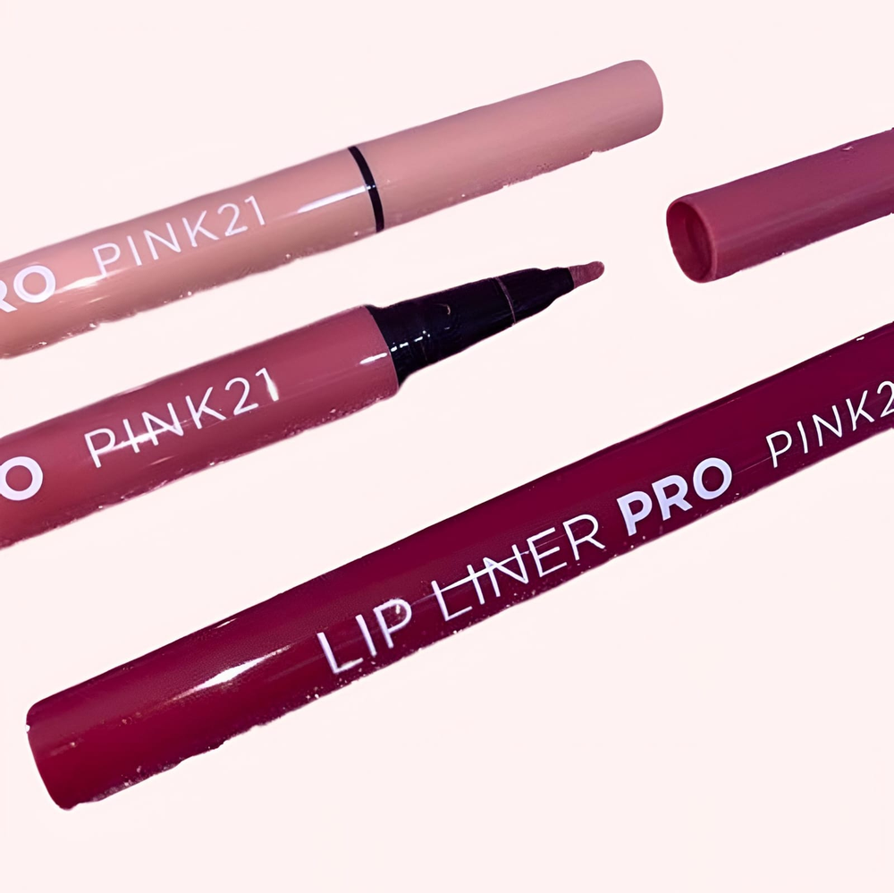 (Lip liner PRO marca "PINK 21". Viene en 6 tonos de delineado diferente: salmón, rosa viejo, bordo, rojo carmesí, rojo vino y rosa).