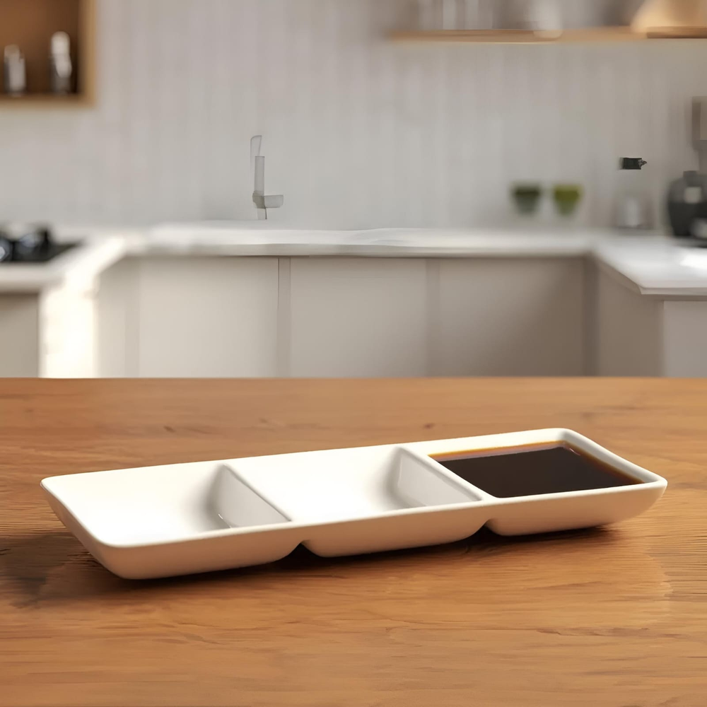 (Cazuela dip triple "Crystal Rock". Es ideal para servir porciones de salsas, condimentos, aderezos, mantequilla derretida, o guarniciones como salsa y guacamole).
