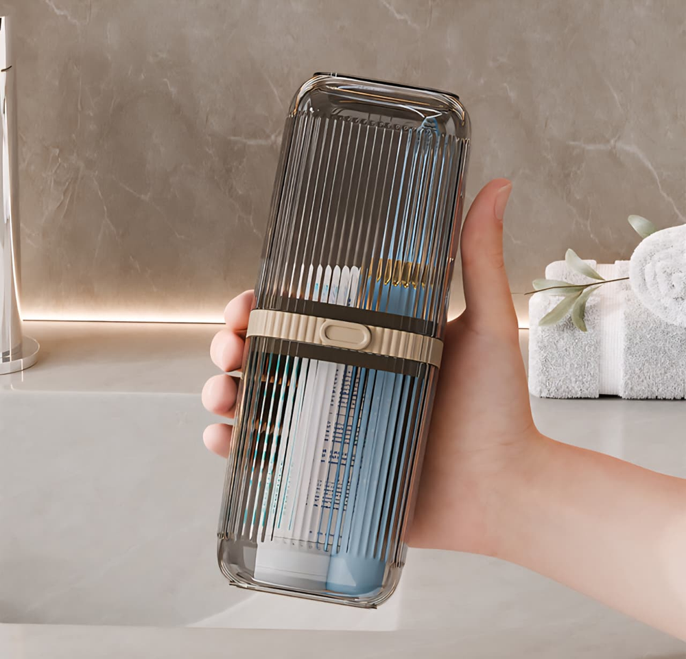 (Porta cepillo multiuso. Cuenta con un compartimento amplio y puede utilizarse uno de los extremos como vaso. Ideal para viajes).