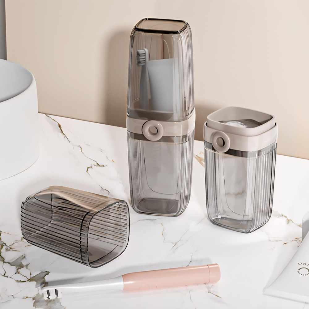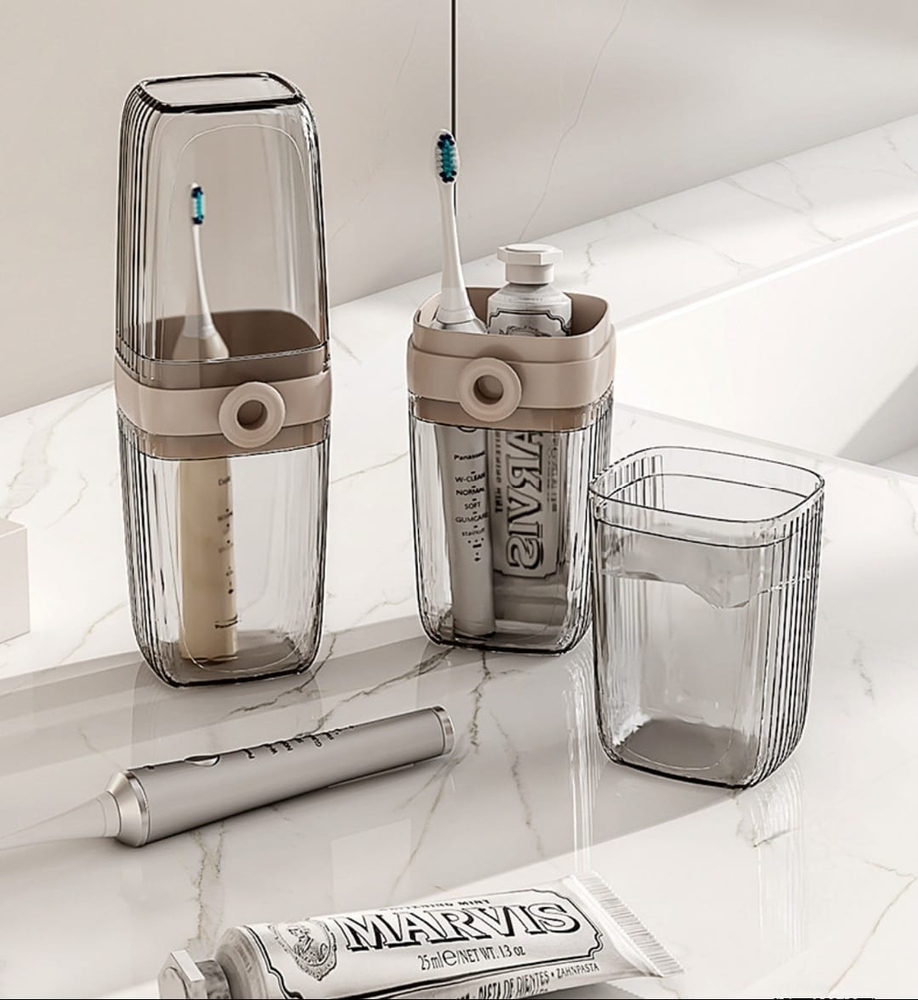 (Porta cepillo multiuso. Cuenta con un compartimento amplio y puede utilizarse uno de los extremos como vaso. Ideal para viajes).