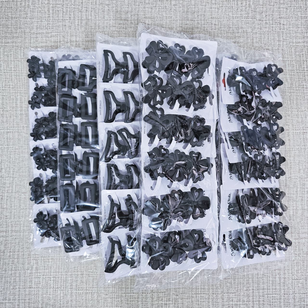 (Pack x 12 Blíster de Broches, el blíster lleva 3 broches negro matte para el cabello. Disponible en varios diseños a elección).