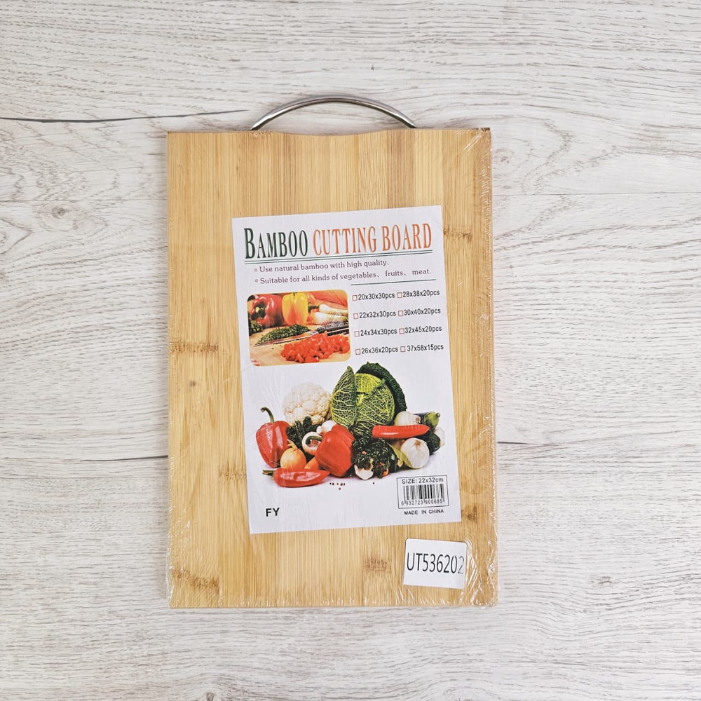 (Tabla de picar o para picadas de forma rectangular y cuenta con manija de acero para poder agarrarla o colgarla).