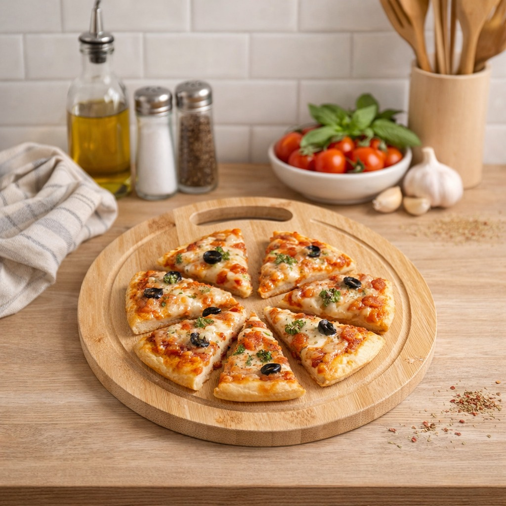 (tabla pizzera redonda, previene el crecimiento de bacterias. Fácil lavado y secado rápido).
