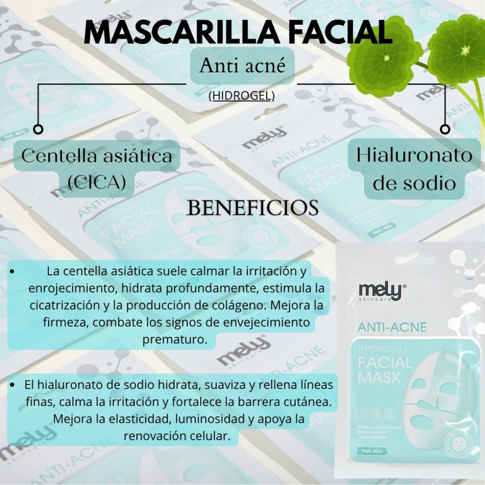 (Está diseñada para tratar pieles con tendencia acneica. Su innovador formato en hidrogel proporciona una sensación refrescante, se adapta perfectamente al rostro y mejora la absorción de los activos).