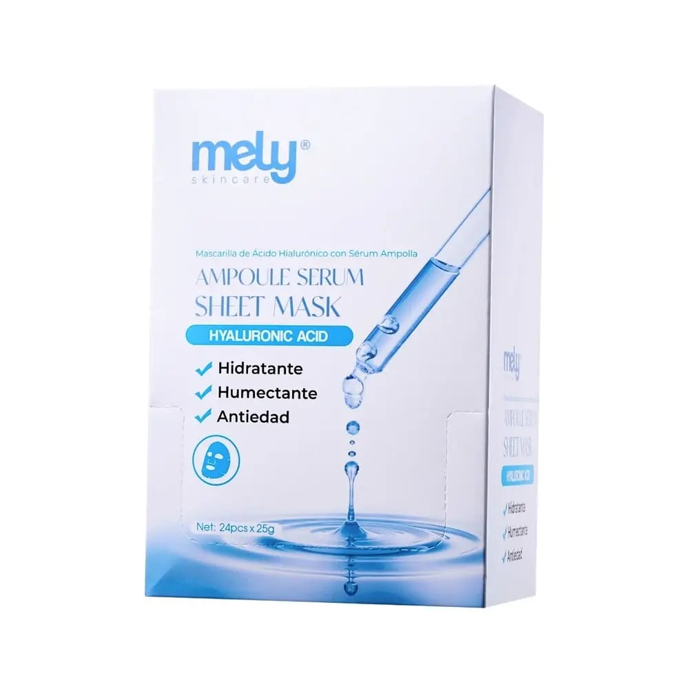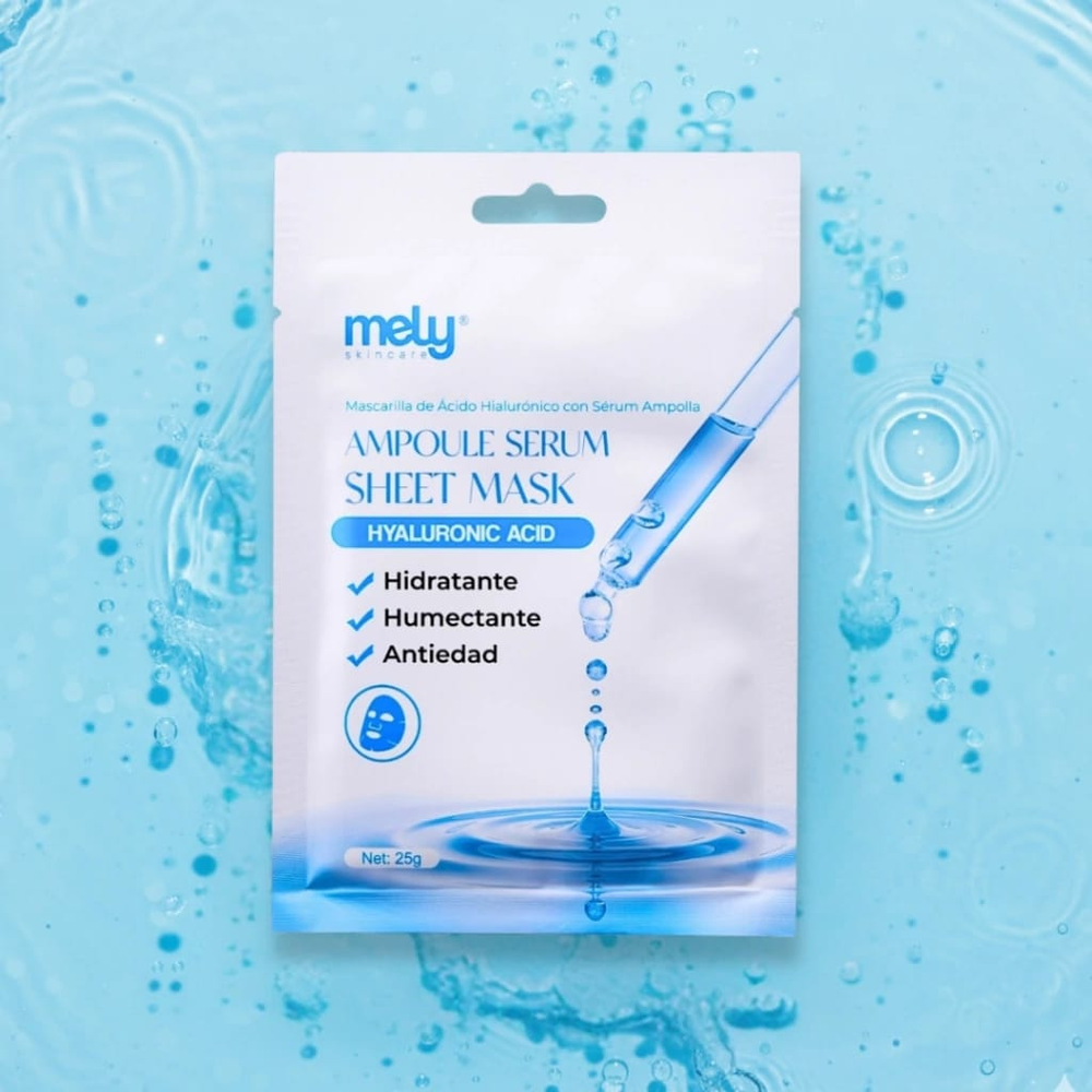 (Esta mascarilla de tela viene súper impregnada en un potente sérum concentrado, tipo ampolla, que brinda beneficios al instante. El ácido hialurónico es un gran aliado para atraer y retener la humedad, ayudando a reponer el agua en la piel).