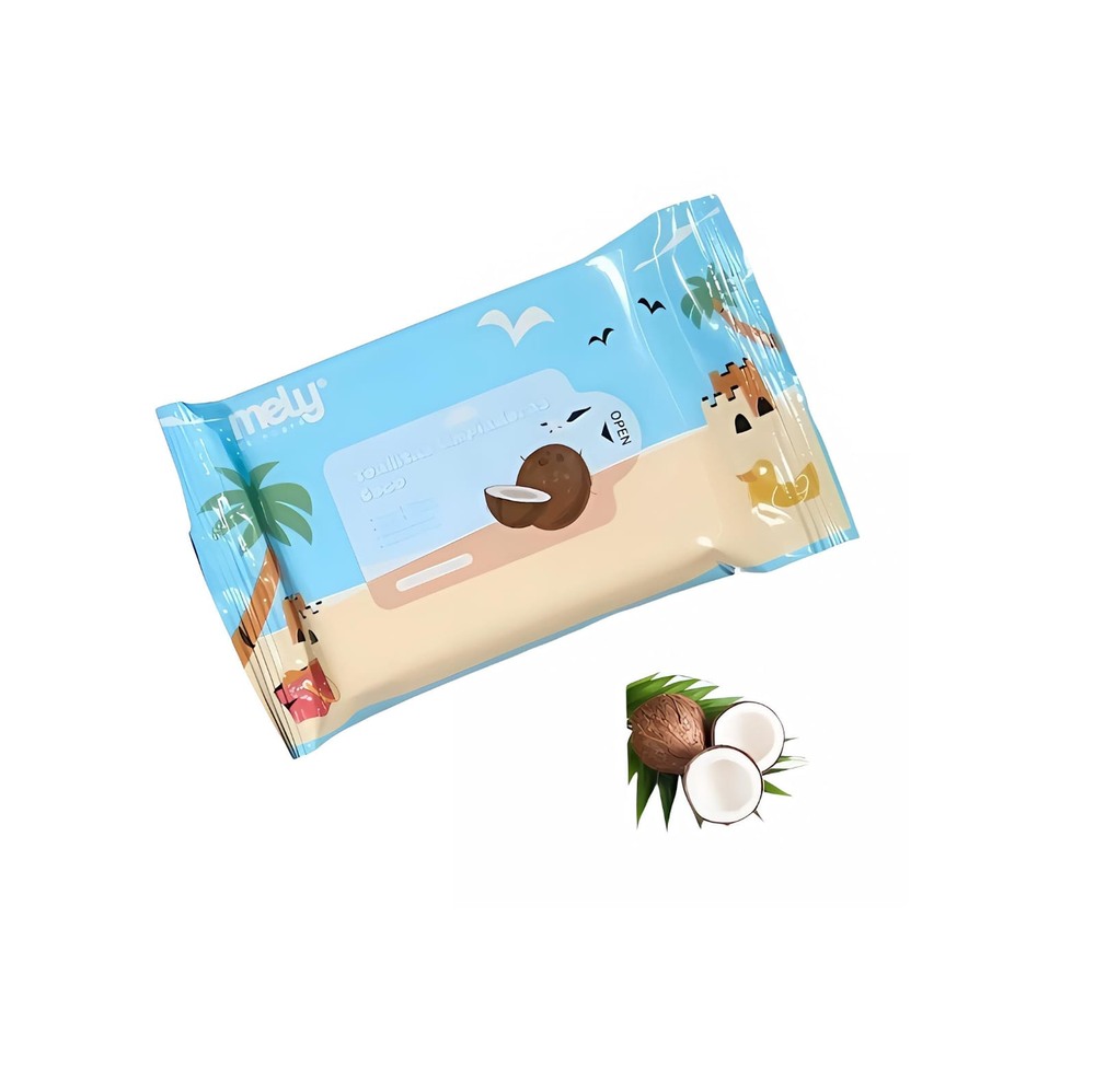 (Toallitas Desmaquillantes de Coco "Mely". Estas toallitas contienen 10 de ellas Ideales para desmaquillar y cuidar tu piel dándote hidratación).