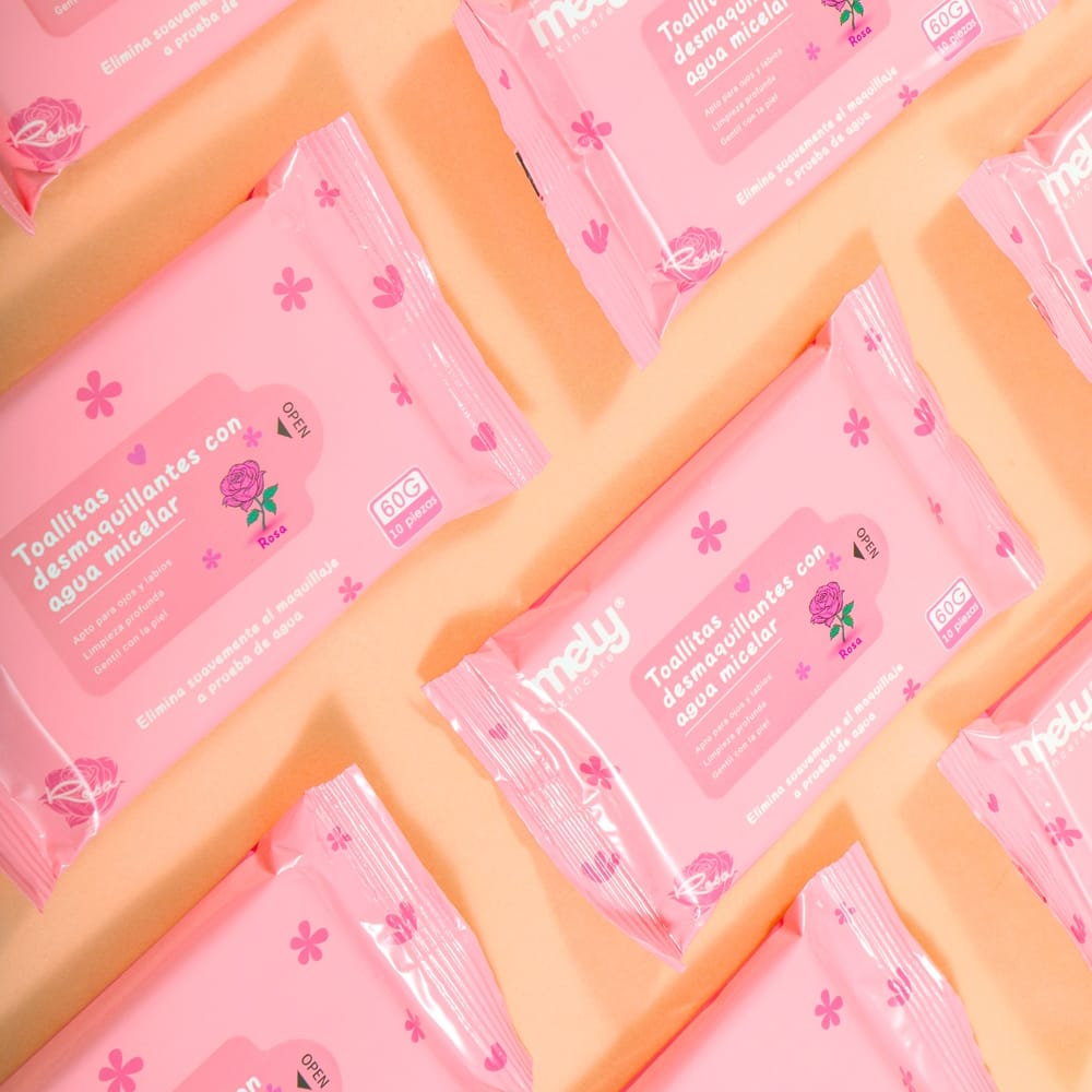 (Toallitas Desmaquillantes de Rosas "Mely". Estas toallitas contienen 10 de ellas Ideales para desmaquillar y cuidar tu piel dándote hidratación).