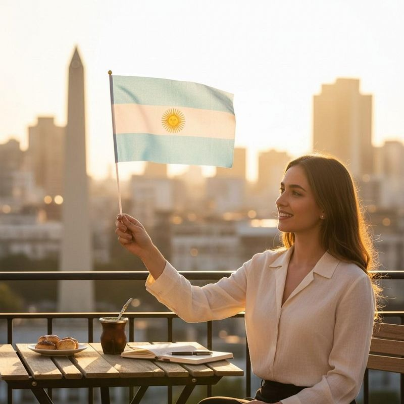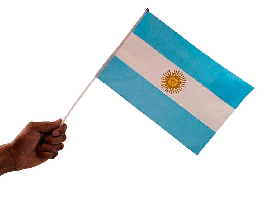 (Bandera Argentina de mano. Ideal para para mostrar orgullo nacional en eventos y celebraciones).