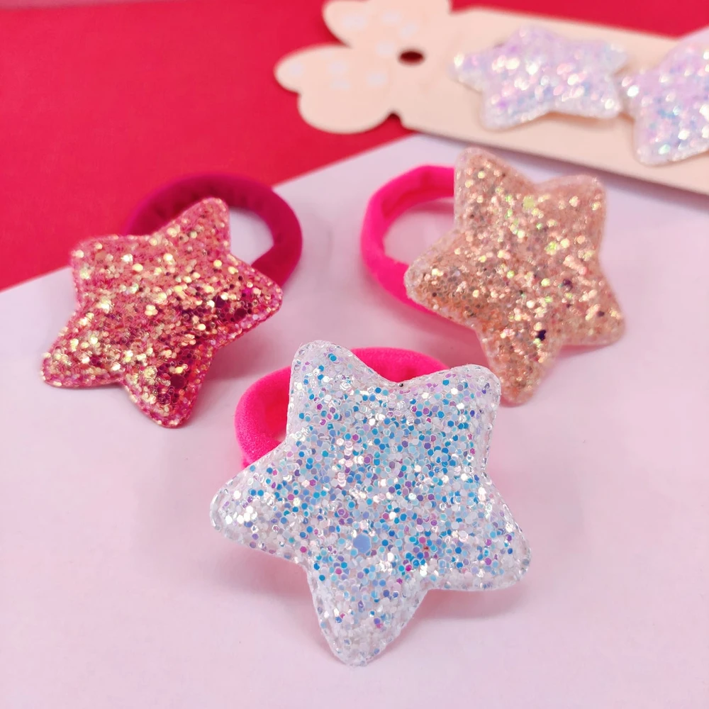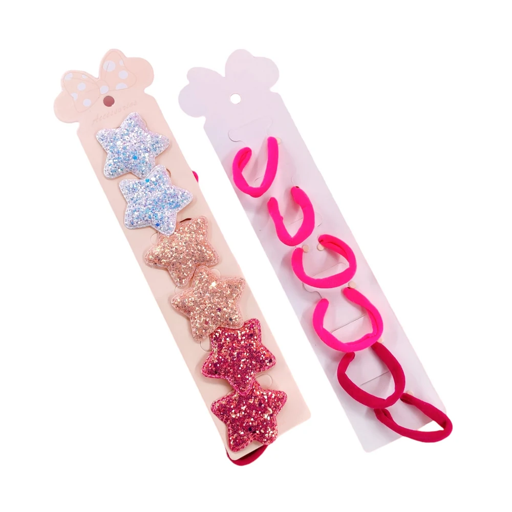 (Blisters colitas con diseño de estrella con glitter, blíster por 6 unidades con 3 variedades de colores: fucsia, rosa, blanco. Accesorio para el pelo.)