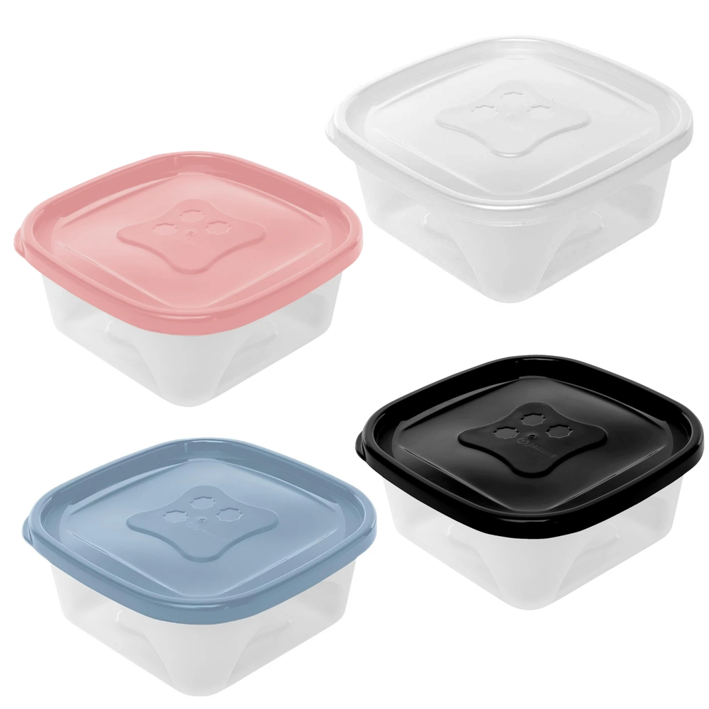 (Tupper cuadrado que puede ser utilizado para organizar la heladera, guardar sobras, o incluso para almacenar otros objetos pequeños, como accesorios de cocina o artículos de viaje. Son aptos para heladera, freezer y microondas (usar sin la tapa). Disponibles en 4 colores).