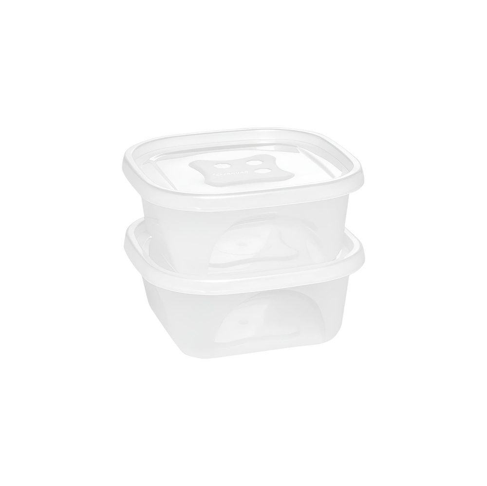 (Set de 2 tupper que permiten guardar y transportar comidas de forma práctica y ligera. Ayudan a preservar la frescura de alimentos como comidas preparadas, frutas, verduras o galletas. Pueden ser utilizados en el microondas (sin la tapa), el congelador o la nevera para conservar y calentar alimentos en el mismo recipiente).