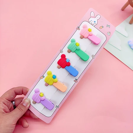 (Blíster de 5 hebillas con un cactus de distinto color en cada una, perfectas para peinados sencillos pero geniales).