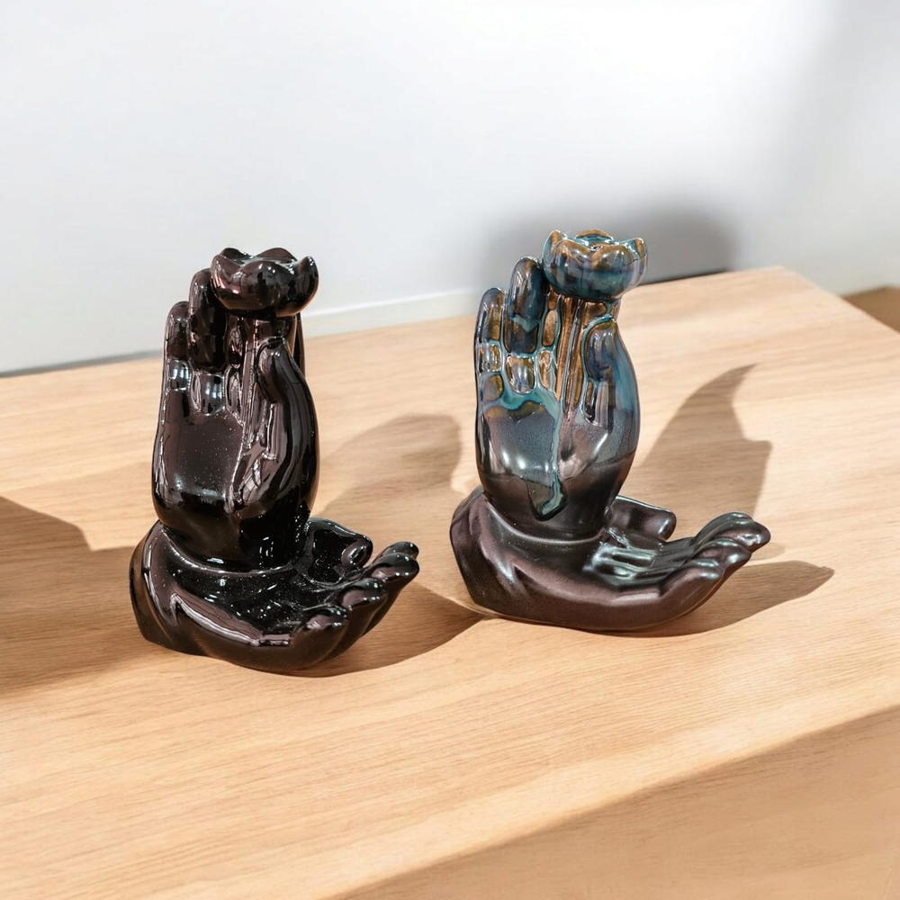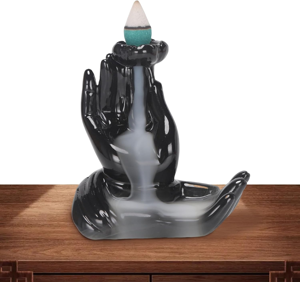 (Quemador de incienso de reflujo de cerámica con efecto mano. Ideal para crear un ambiente relajante y tranquilo en el hogar, oficina o sala de meditación)