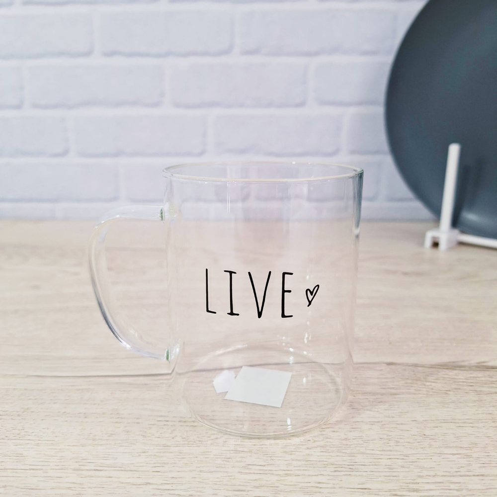(Taza de vidrio transparente con un diseño minimalista. Ideal para café, té o chocolate caliente, permitiendo ver el contenido de la bebida).