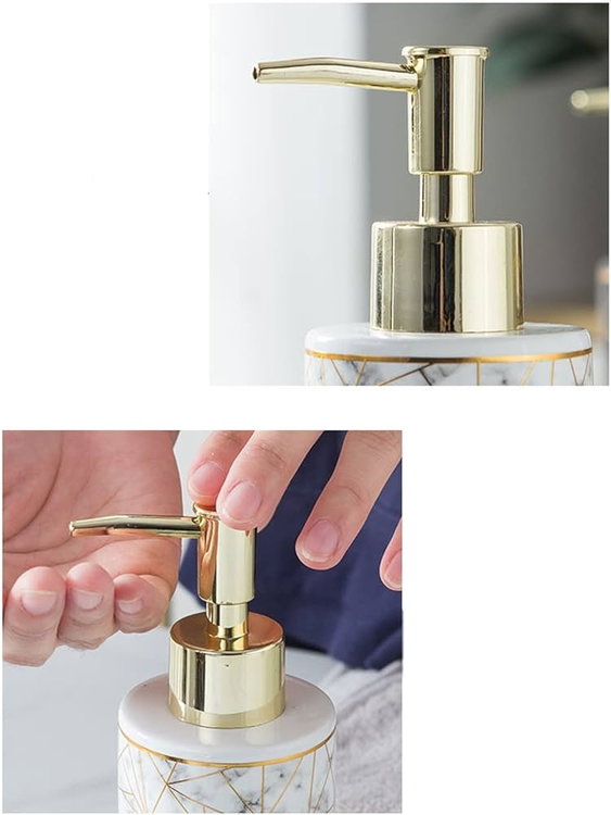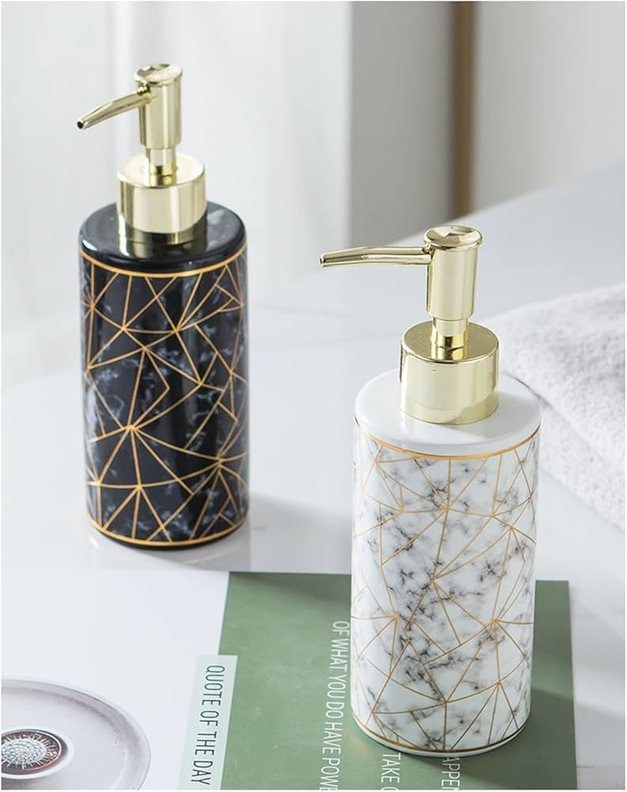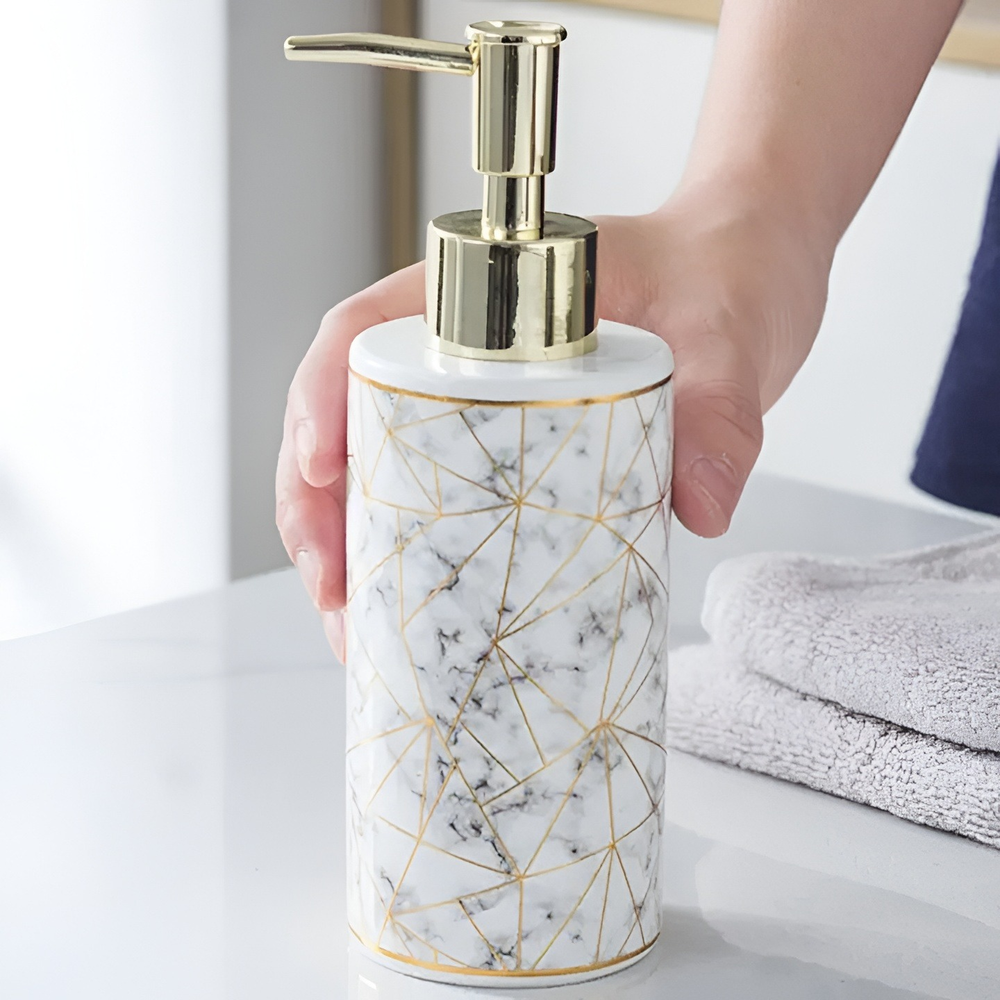 (Dispenser de cerámica para jabón liquido. Excelente calidad y terminación. Diseño salpicado en dorado).