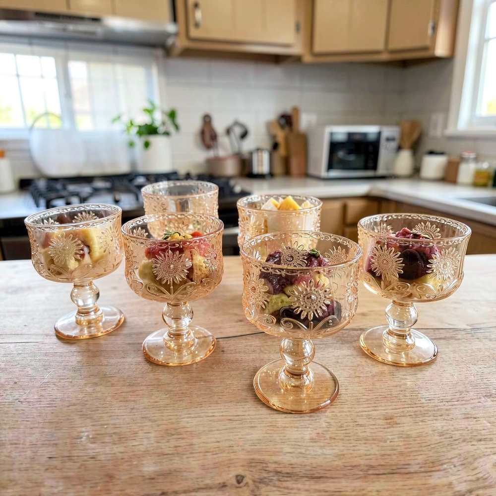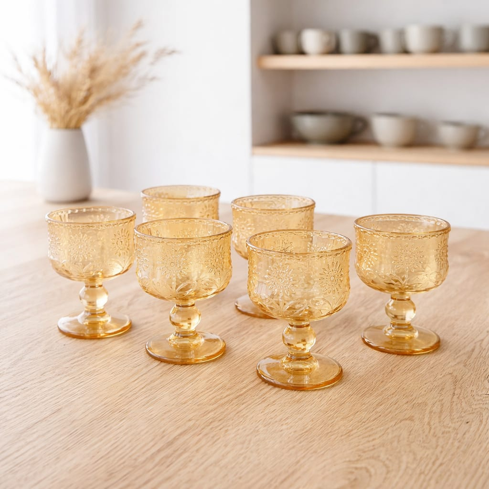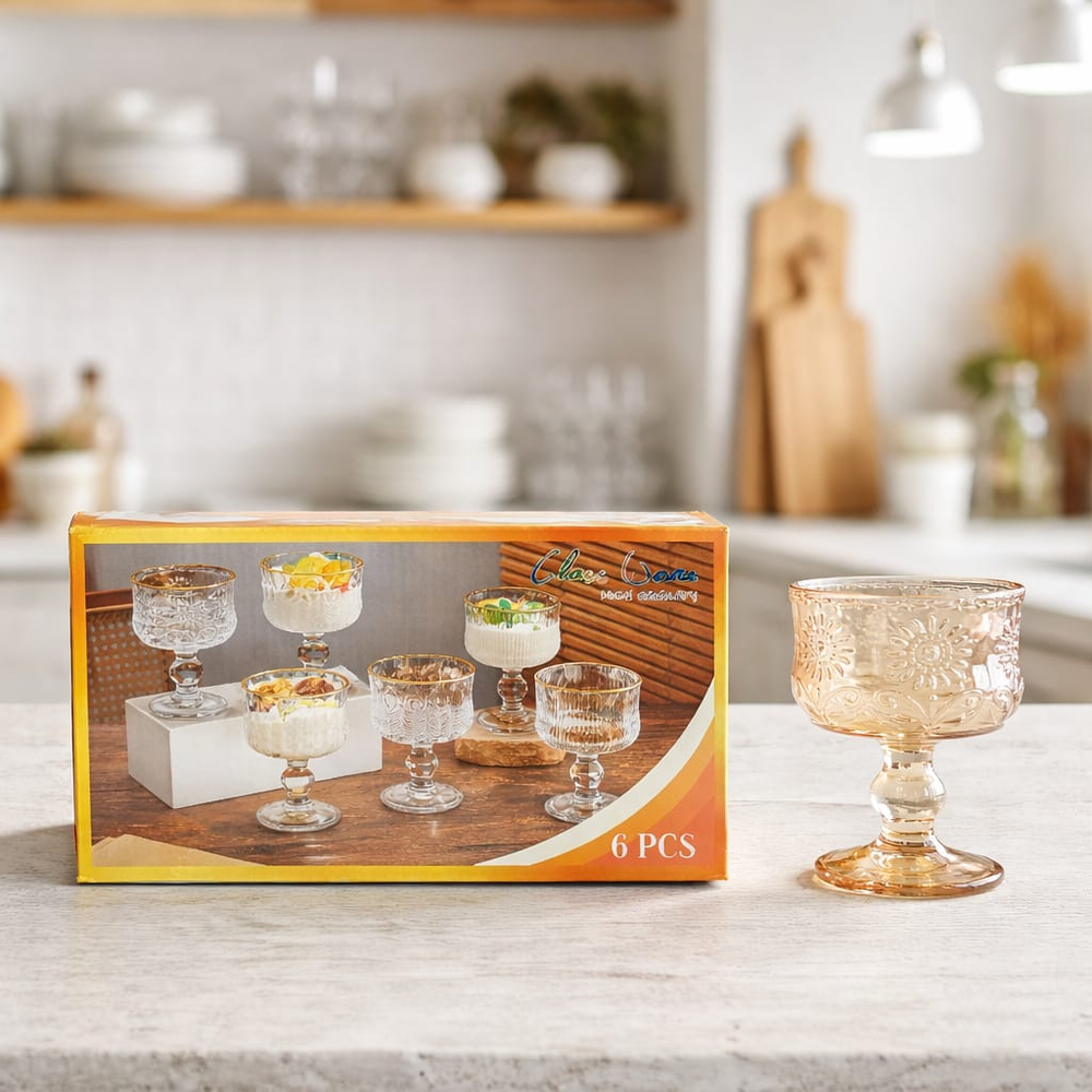 (Juego de copas de vidrio de estilo vintage con diseño labrado).