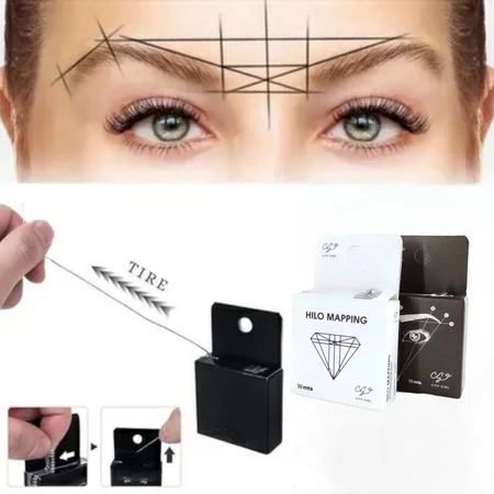 ( Hilo mapping es un fabuloso producto que ayuda a crear cejas simétricas perfectas en poco tiempo y mejora el microblading. La cuerda ya está precoloreada con carbón negro para que no tengas que colorear la cuerda tú mismo. El proceso de dibujo es más rápido y preciso que nunca y da como resultado una forma refinada).