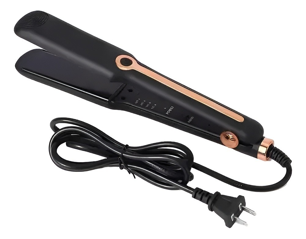 (Plancha de Pelo "OM" Keratina Pro es la herramienta ideal para lograr un cabello liso y brillante. Con una potencia de 45W, se calienta en solo 30 segundos. Cuenta con un regulador de temperatura que permite ajustar entre 160 °C y 220°C, adaptándose a diferentes tipos de cabello).
