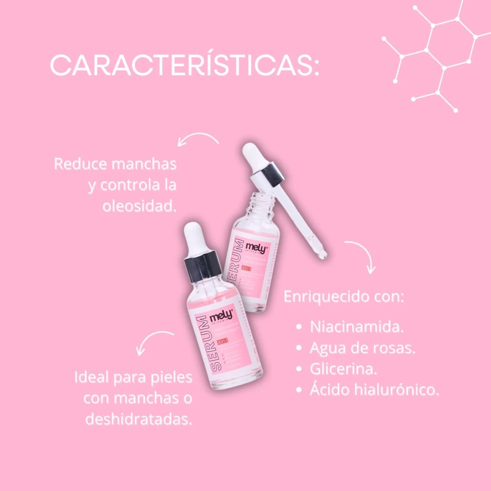 (Uniforma e hidrata tu piel con este sérum que combina niacinamida, agua de rosas, glicerina y ácido hialurónico. Reducí manchas, controla oleosidad y disfruta de un rostro radiante y suave).