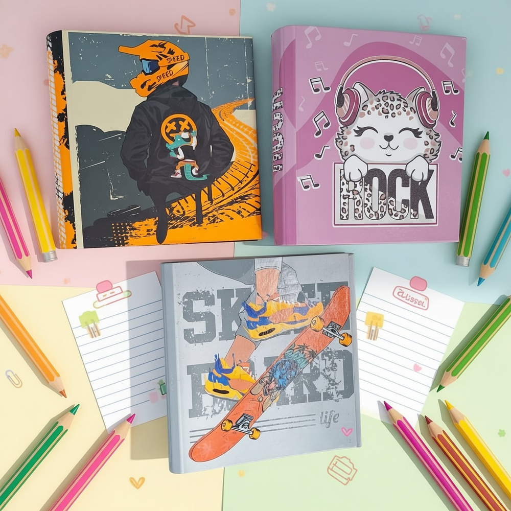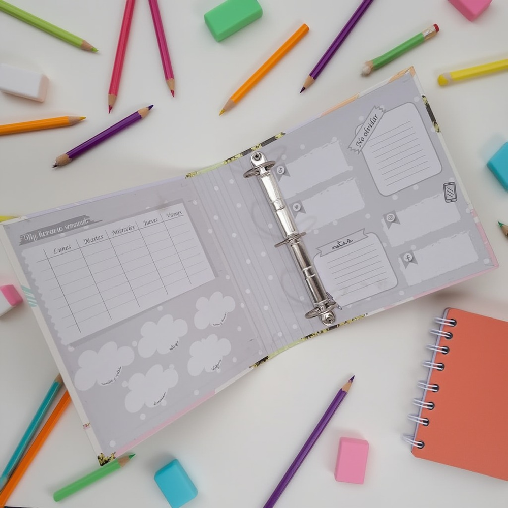 (Carpetas tapaduras con hermosos estampas. En su interior cuenta con un formulario para completar tus datos personales, horarios y contactos. Ideal para vuelta al cole).