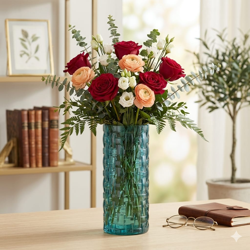 (Florero de vidrio labrado para transformar los espacios de tu hogar, oficina, etc.).