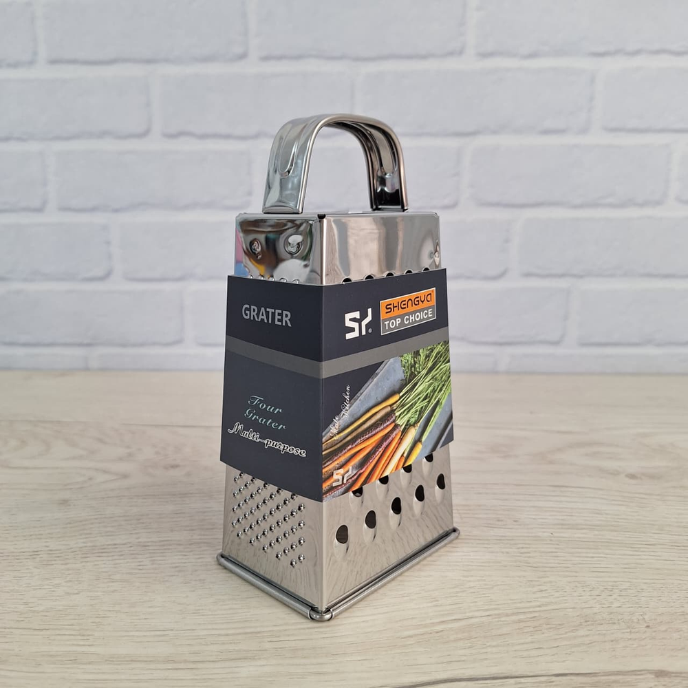 (Rallador con mango de 4 caras tamaño chico con mango y cuerpo de acero inoxidable. Fácil y práctico de usar a la hora de cocinar, un accesorio infaltable para la cocina).