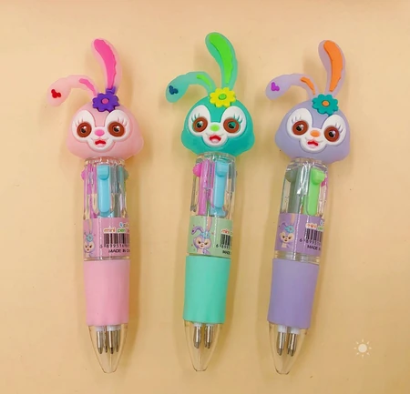 (Birome con un diseño divertido, la misma tiene un mix de colores: gris, verde, celeste y rosa. La lapicera cuenta con un sistema de "palancas", teniendo en cuenta el color con el que queremos escribir, la palanca correspondiente se podrá bajar para seleccionarlo. Como decoración tiene un conejito con tonos a elección como verde, amarillo, lila y rosa. Ideal para uso personal o de regalo. Rellena tu cartuchera con estas fabulosas lapiceras! Categorizado en librería)
