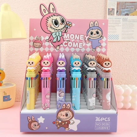 (Caja x 36U. Birome Mix Color con diseño de "Labubu", disfruta de tener todos los colores en un misma lapicera). Las expresiones faciales de las biromes pueden variar