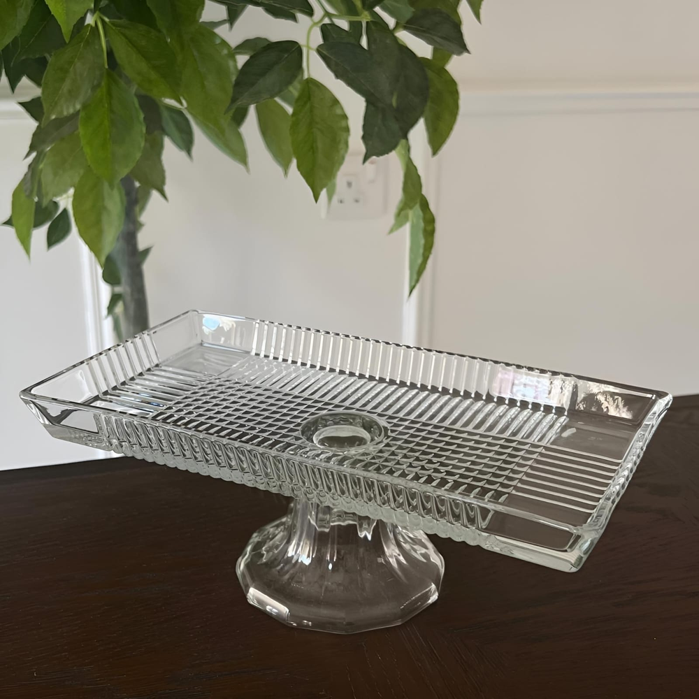 (Centro de mesa de vidrio elegante . Ideal para exhibir frutas , adornos, etc.).