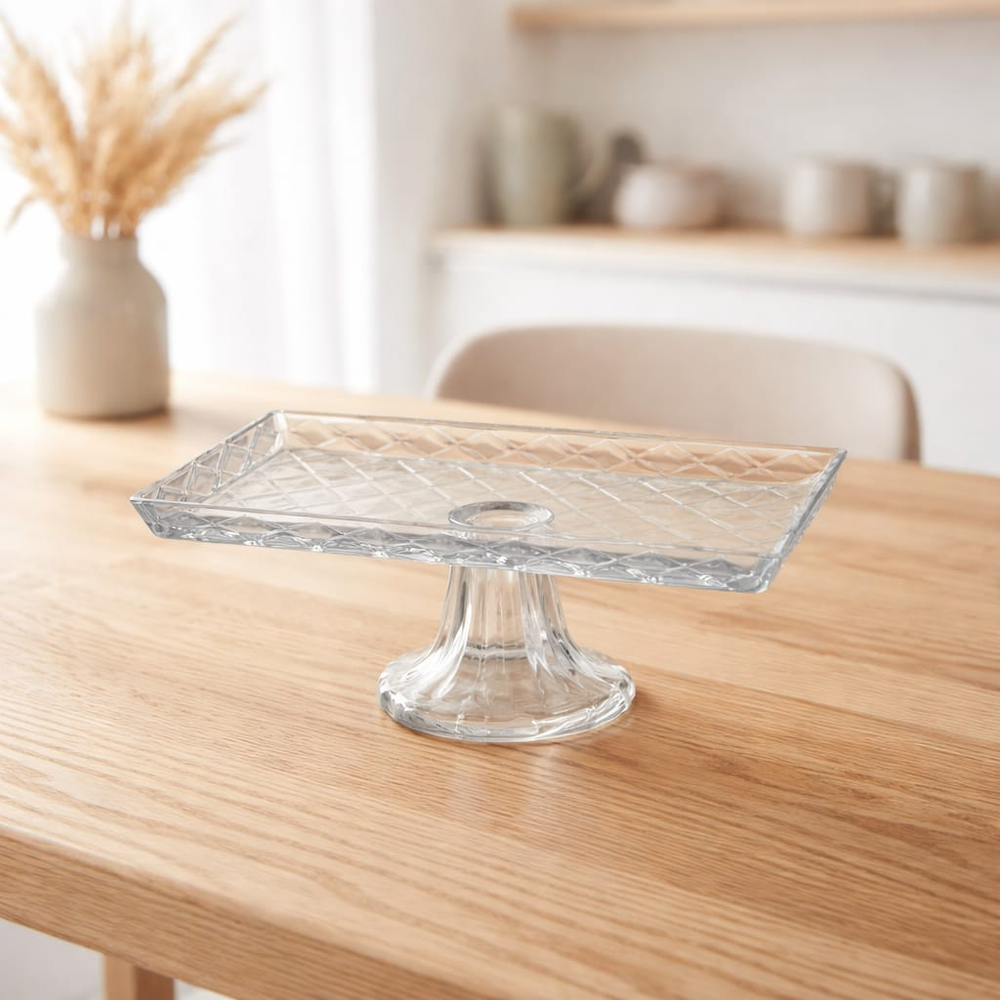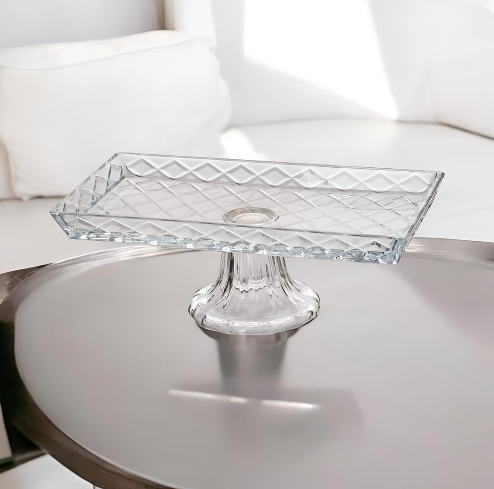 (Centro de mesa de vidrio elegante . Ideal para exhibir frutas , adornos, etc.).