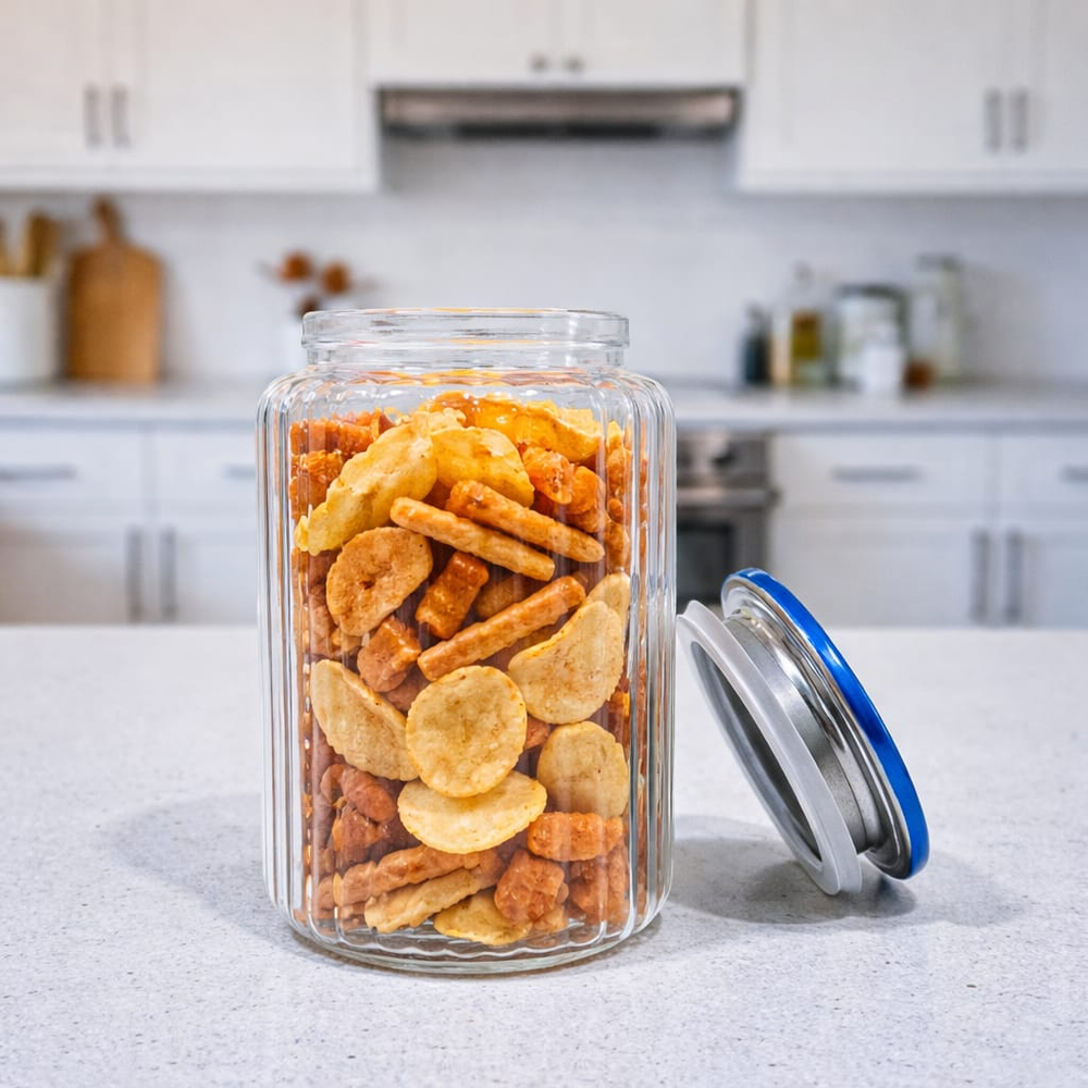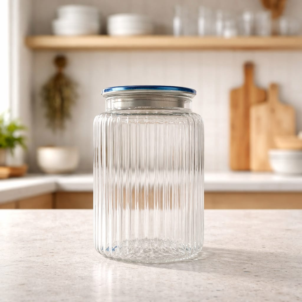 ( Frasco de vidrio diseñado para el almacenamiento de alimentos, ideal para mantener la alacena organizada y con estilo).