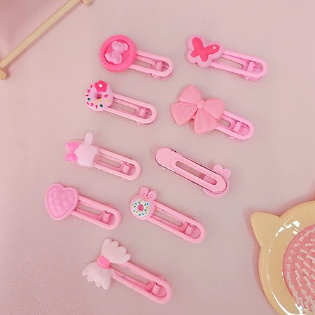 (Set de 2 hebillas ovaladas con dijes y una colita con muñequita , perfectas para peinados sencillos pero fantásticos).