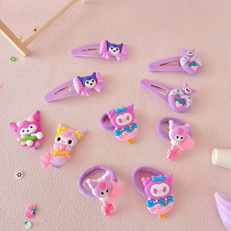 (Cada blister cuenta con 2 colitas, 3 hebillas con diseño de "Kuromi". Vienen 4 modelos diferentes. Ideal para realizar peinados y resaltar tu cabello).
