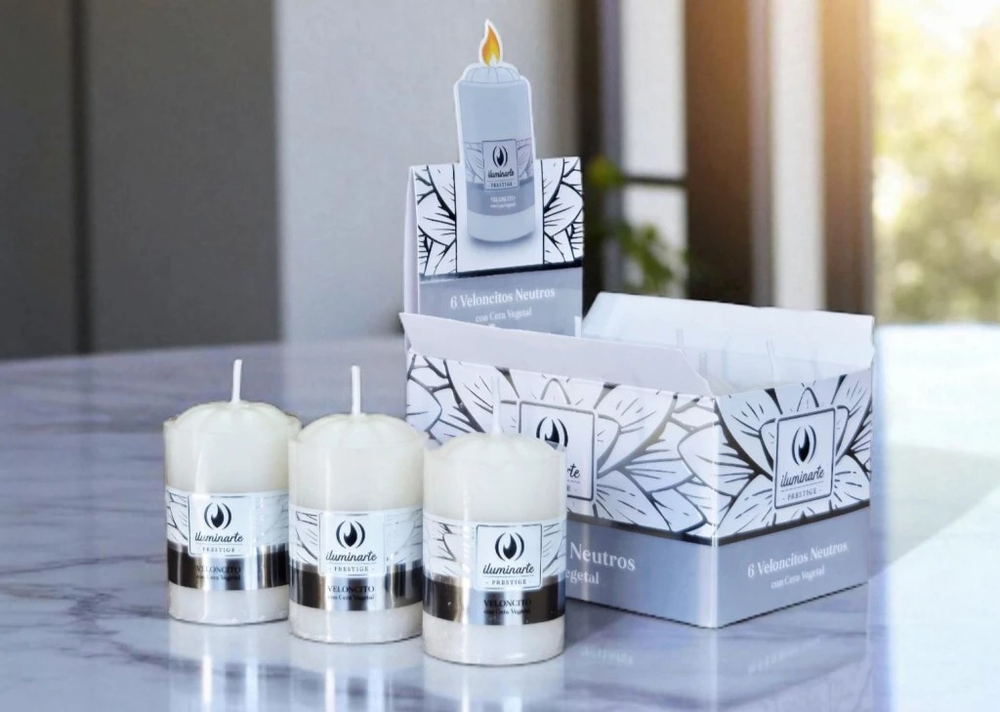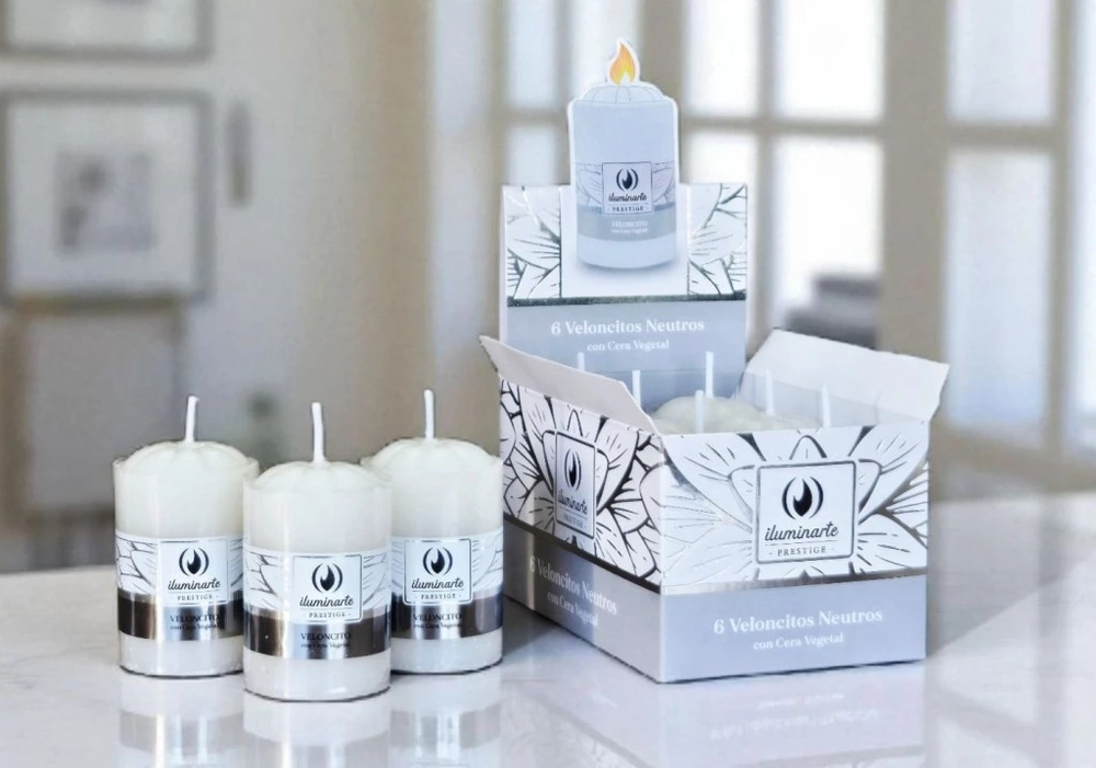 (Veloncitos Iluminarte Neutros por 6 unidades. Ideal para souvenirs o centros de mesa iluminados).