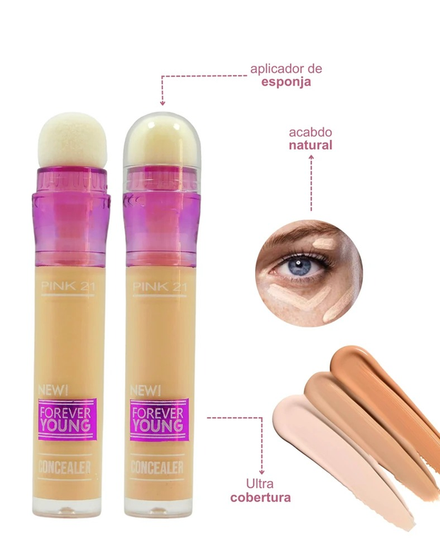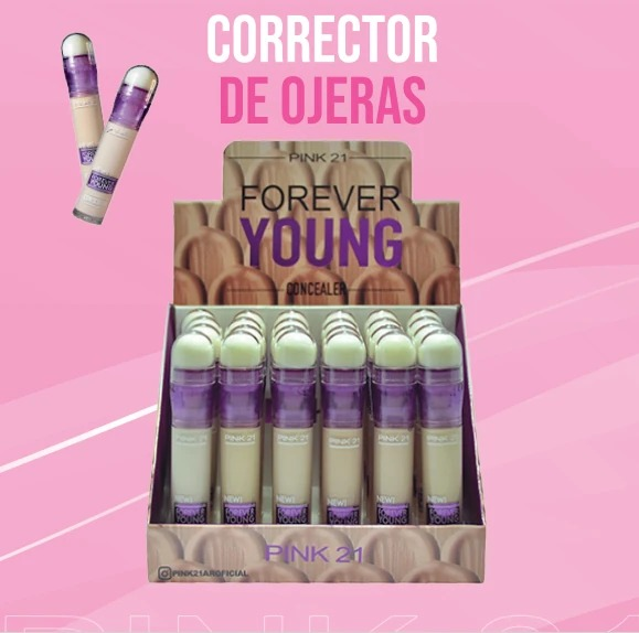 (Corrector Forever Young "Pink 21" Caja x 24U. cubre imperfecciones localizadas como ojeras, manchas, granitos o rojeces).