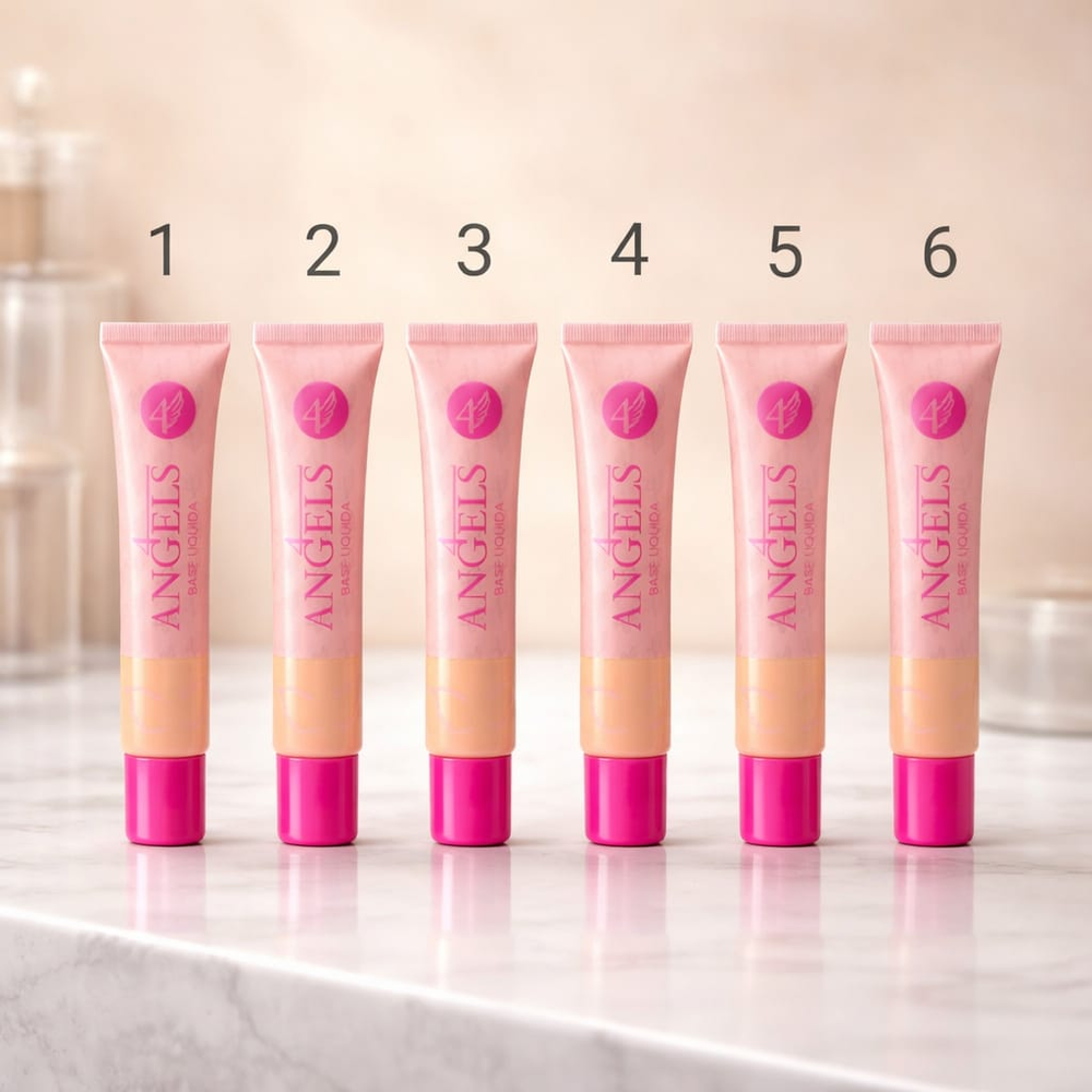 (Base de Maquillaje "4 Angels". Disponible en 6 tonos diferentes a elección. Ideal para que no falte en tu maquillaje).