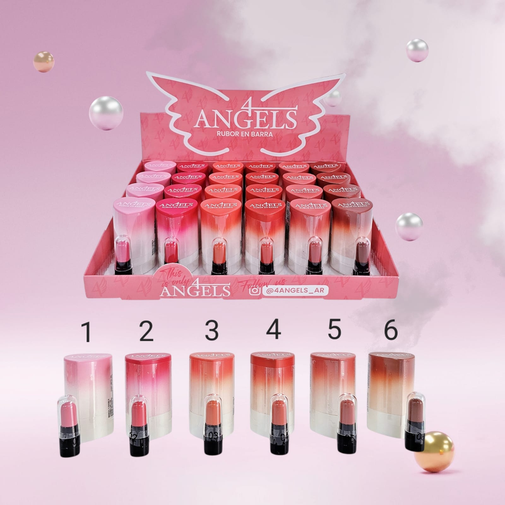 (Rubor en barra "4 Angels" disponible en 6 tonos. Ideal para que no falte en tu maquillaje).