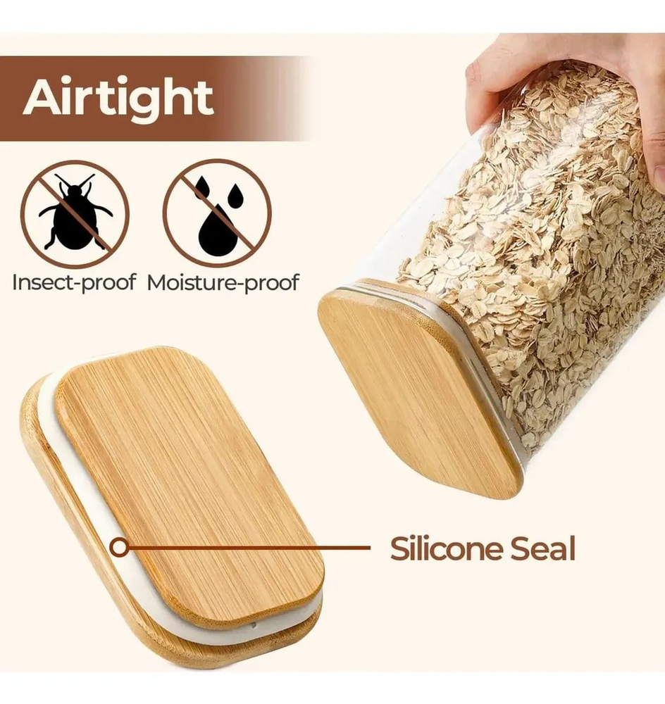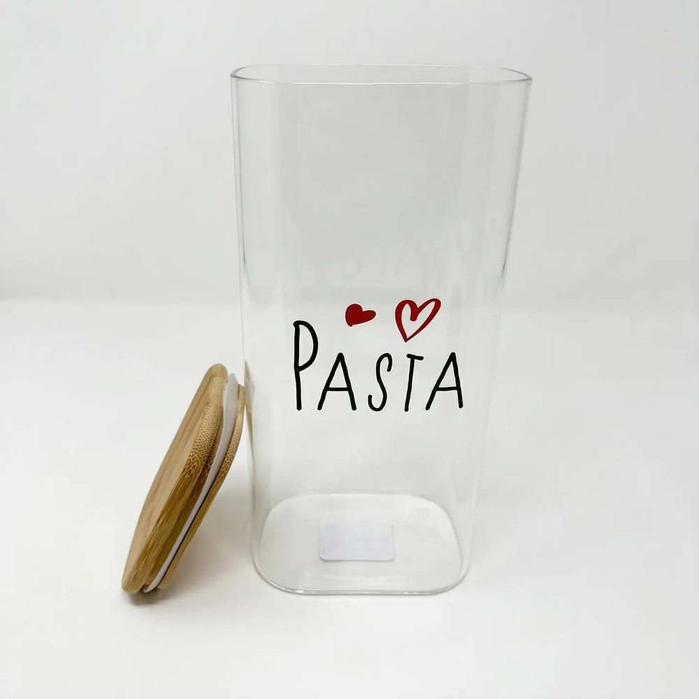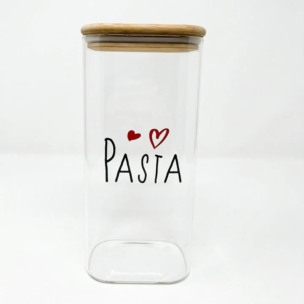 (Frasco de vidrio "Pasta", cuenta con una tapa de madera de bambú con una silicona para evitar pérdidas, cierre hermético a presión).