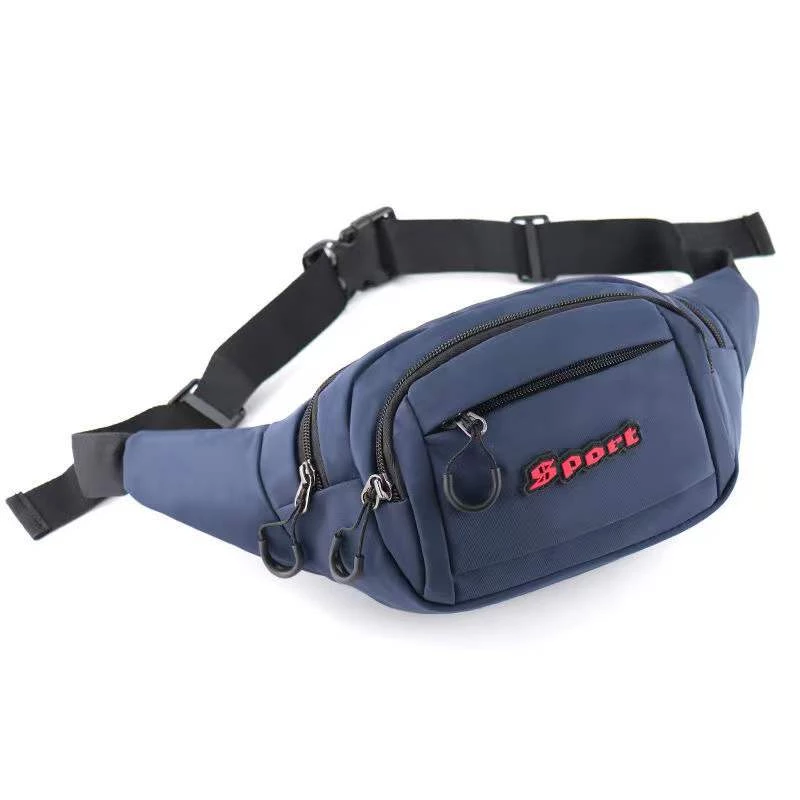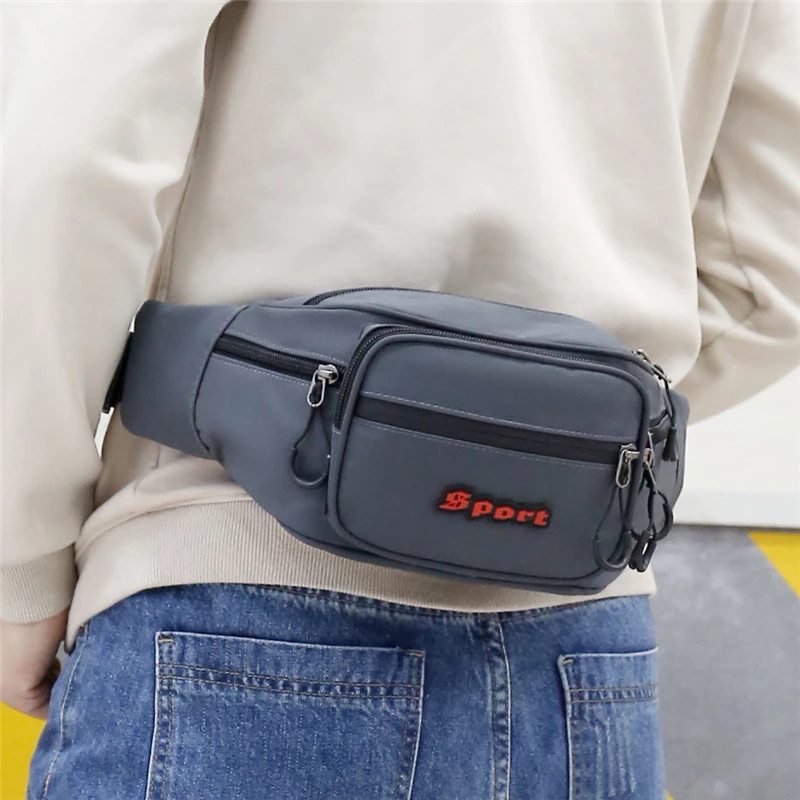 (Riñonera de la marca Sport. Cuenta con 3 bolsillos frontales de distintas medidas y un bolsillo trasero todos con cierre. Correa ajustable. Disponible en 4 colores: gris, negro, rojo y azul).