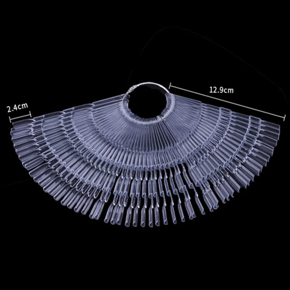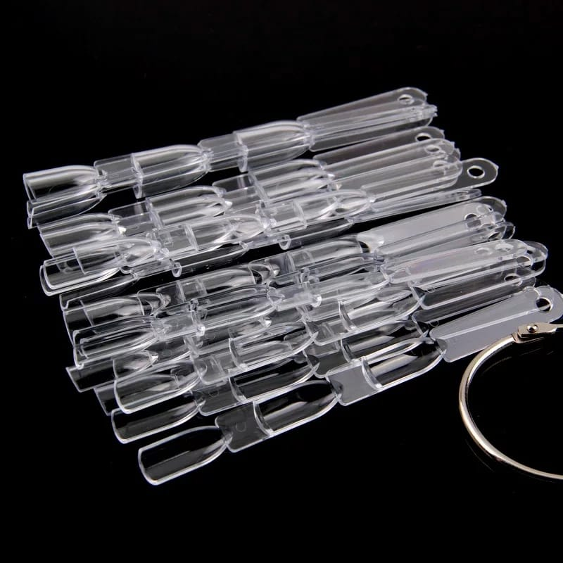 (Muestrario de uñas por 50 unidades de color blanco y transparente con aro de gancho para poder sacar y volver a guardar la muestra, ideal para mostrar los colores de esmaltes de uñas, gel uv, acrílico o para practicar nail art, para manicura, practica profesional o principiante. Categorizado en: Cosmética)