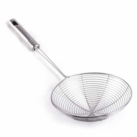 (Espumadera colador grande para filtrar agua o aceite de las comidas. Con orificio para colgar. Categorizado en utensilios).