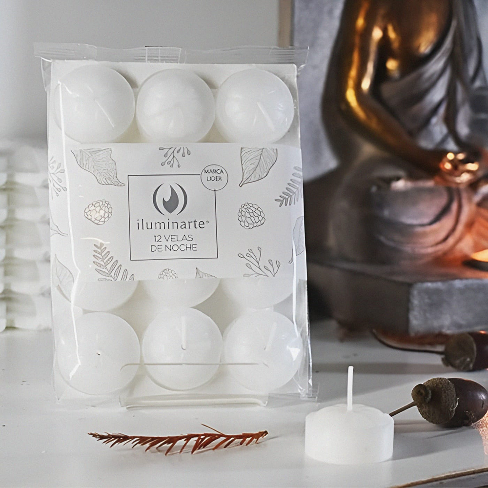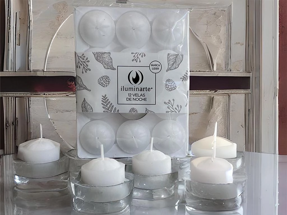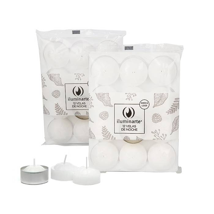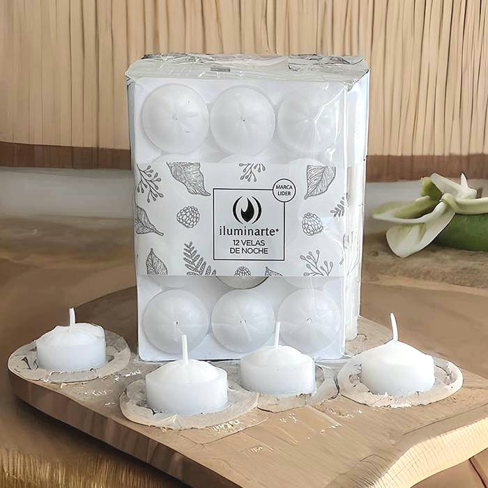 (Velas De Noche "Iluminarte" x 12U. velas decorativas, para hornito, centro de mesa, souvenirs).