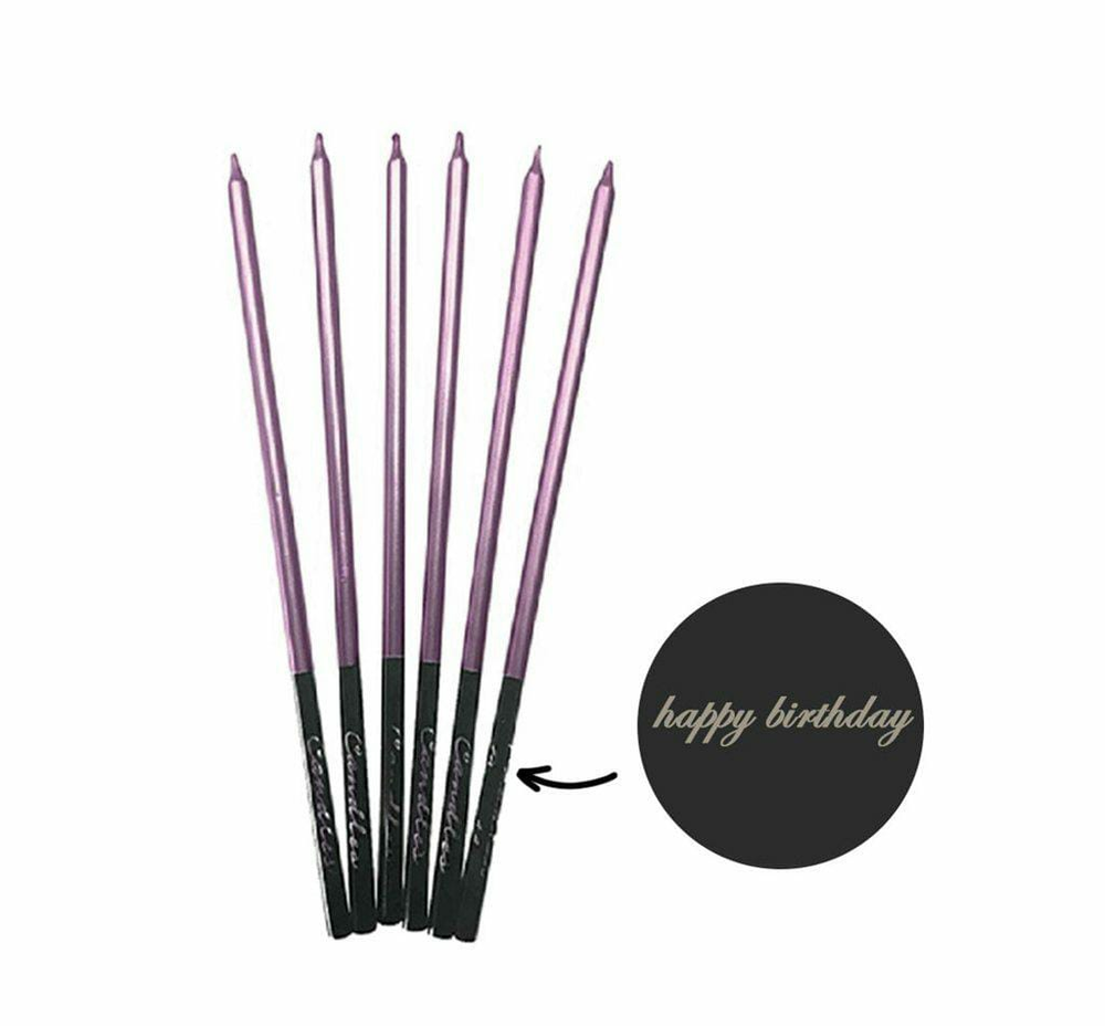 (Velas "happy birthday" en cajita que contiene 6 unidades, ideales para la decoración en tortas y fiestas de cumple años, varia en tres modelos, azul metalizado/negro, bordo metalizado/negro y multicolor. Categorizado en cotillón.)
