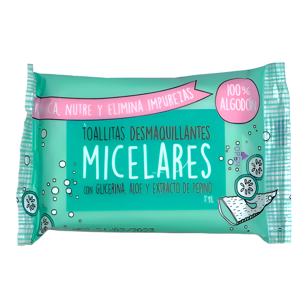 (Toallitas húmedas desmaquillantes con glicerina, aloe y extracto de pepino. Apta para todo tipo de piel ya que esta clínica , dermatológica y oftalmológicamente testeadas. Pensadas para limpiar todas impurezas o maquillaje).